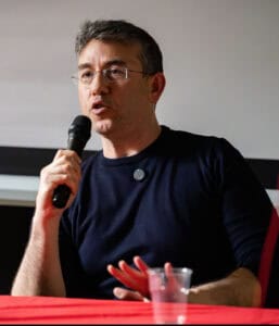 – Italian spoken by Stefano, but you may contribute in English. Samuele is there to help explain in English when it gets ‘poetic’; Stefano and he ‘speak the same language’.